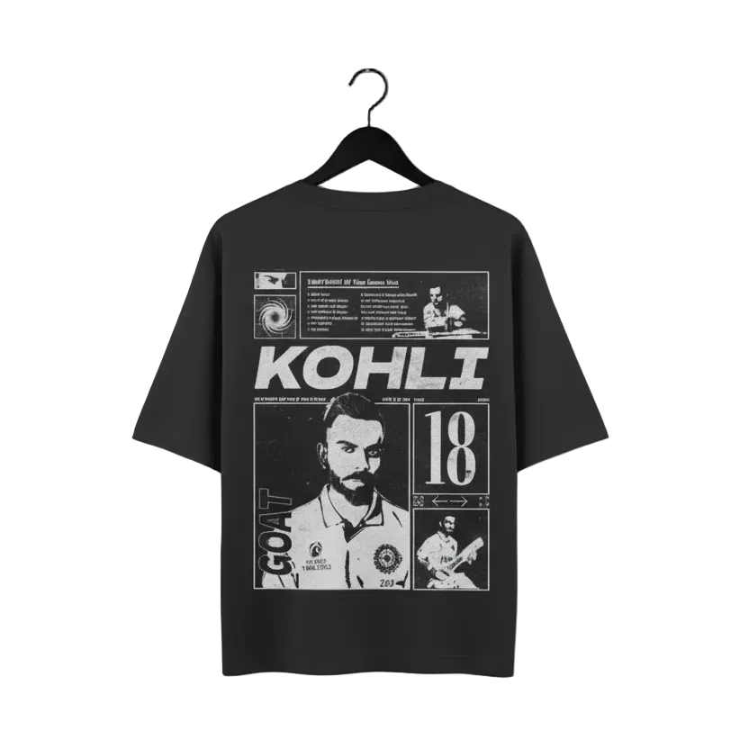 Celebrate the legacy of a legend. This isn't just a t-shirt; it’s a high-performance streetwear staple engineered for those who demand greatness in every aspect of life. Featuring a bold, multi-panel graphic tribute to Virat Kohli, this piece offers a structured, boxy look that stays sharp, wear after wear.